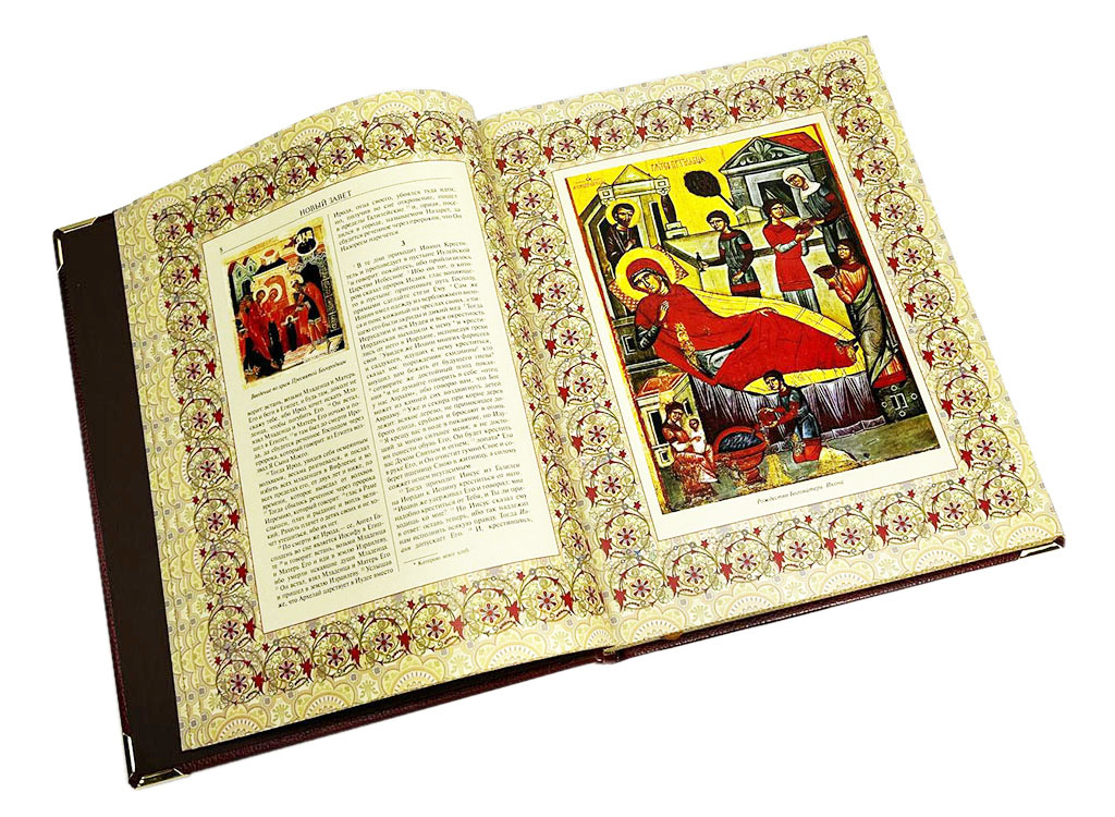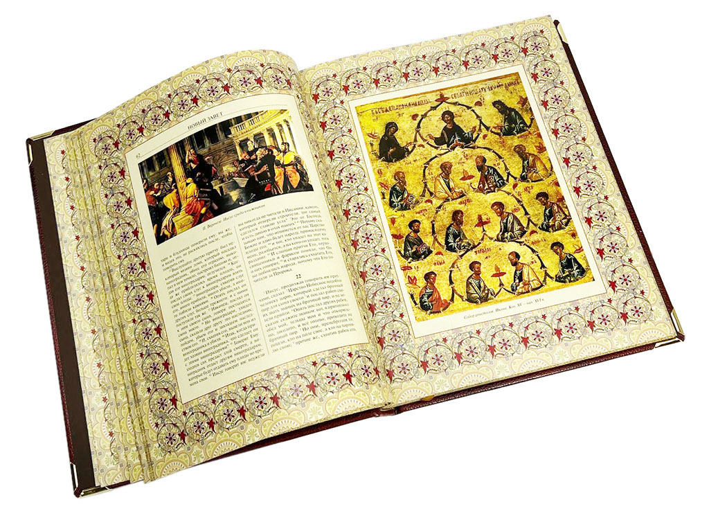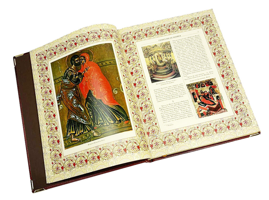 Духовное величие Нового Завета подчеркнуто его безупречным материальным воплощением. Наше эксклюзивное издание представлено в цельнокожаном переплете ручной работы, выполненном с использованием благородных материалов и традиционных переплетных техник. Книга помещена в оригинальный подарочный футляр, что обеспечивает ее сохранность и подчеркивает особую ценность. Высокое качество печати иллюстраций делает этот том образцом элитные издания книг. Такие подарочные книги в кожаном переплете — идеальный, по-настоящему духовный подарок на крещение, венчание, именины или другой значимый праздник, способный стать фамильной реликвией.