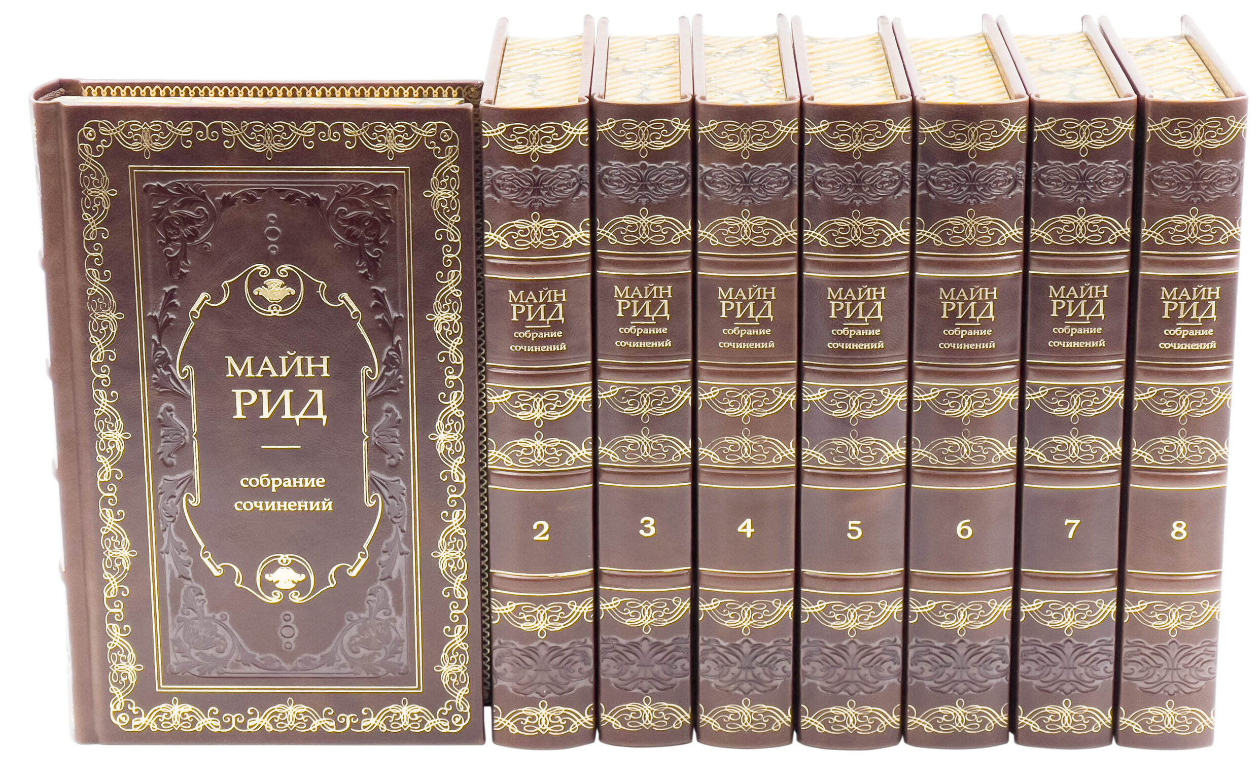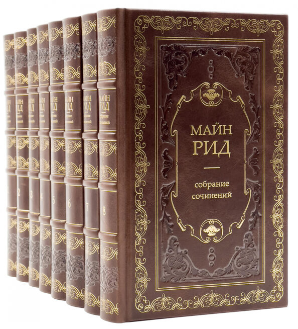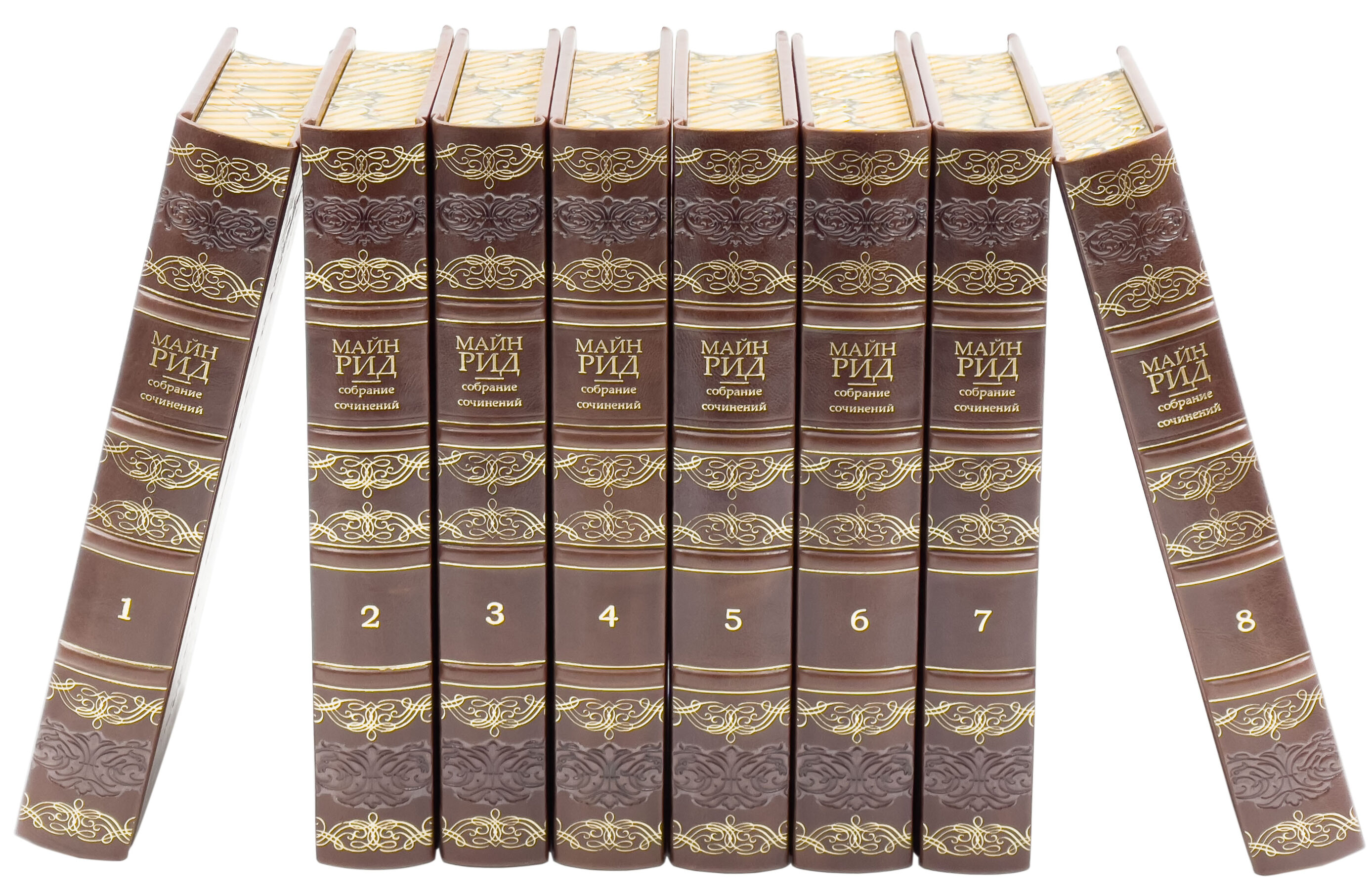 Примером для многих может служить подвиг английского писателя, известного под именем Томас Майн Рид. Покинув свою родину в поисках приключений, молодой человек стал журналистом и выступал в рядах американской армии в войне против мексиканцев 1846-1848 гг. После ранения Майн Рид вернулся в США и написал целый ряд произведений, проникнутых героизмом, патриотизмом и высокими идеями. Читать этого автора приятно и полезно. А дарить книги в твердом кожаном переплете доставляет не меньшее удовольствие. Обложки томов изготовлены вручную и искусно украшены золотыми и блинтовыми узорами тиснения. Форзацы вставлены цветные. Обрез со всех сторон обработан и окрашен. Ляссе и каптал выполнены из шелковой ленты.