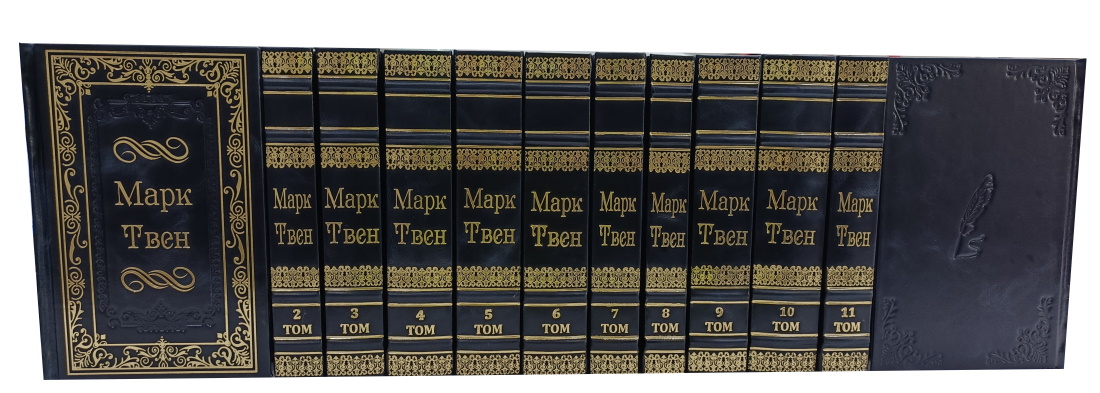 Гений Марка Твена подчеркнут безупречным материальным воплощением. Двенадцать томов этого эксклюзивного издания выполнены в цельнокожаных переплетах ручной работы, объединенных единым стилем, что позволяет создать на книжной полке гармоничный ансамбль. Высокое качество печати, прошитые вручную блоки и благородное тиснение делают это собрание образцом элитные издания книг. Такие книги в коже — не просто собрание сочинений, а настоящая инвестиция в культурное наследие, способная украсить самую взыскательную библиотеку и стать фамильной реликвией, которую с радостью будут передавать из поколения в поколение как свидетельство любви к великой литературе.