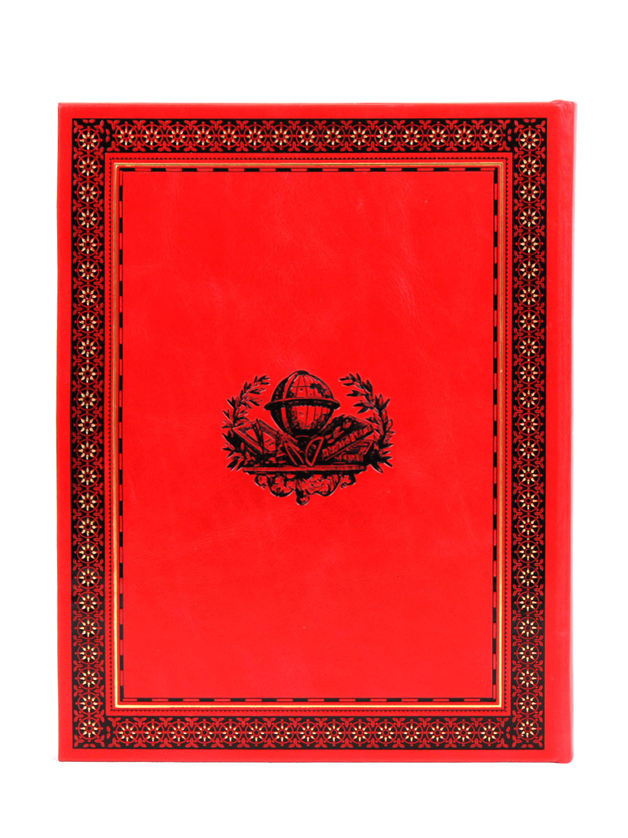 Цельнокожаный переплёт ручной работы, украшен цветной кожаной вставкой, а также цветным и