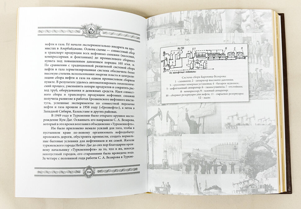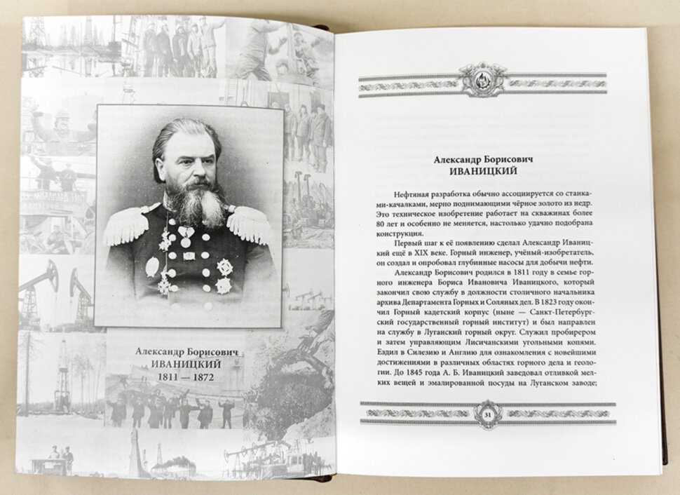 Рады представить вашему вниманию вторую книгу из серии «ВЕЛИКАЯ РОССИЯ». Издание называется «Русский нефтегаз». В книге собраны краткие биографии, великие открытия и деяния наиболее знаменитых русских учёных в области нефти и газа, а также видных деятелей нефтегазового сектора России. Герои книги расположены в хронологическом порядке, поэтому здесь можно не только увидеть жизненный путь знаменитых людей, но и почерпнуть для себя основные вехи развития отечественной нефтегазовой отрасли. Все статьи сопровождаются изображениями героев книги, поэтому читатель сможет узнать как выглядели эти замечательные люди. Текст дополнен также тематическими изображениями и фотографиями. Книга напечатана на дизайнерской плотной высокобелой бумаге в монохромной полутоновой гамме. Издание выпускается только в подарочном исполнении в кожаном переплёте и коробке. Тираж книги 99 экземпляров, каждый из которых пронумерован. Данное издание может стать прекрасным подарком работнику нефтегазовой сферы или любителю истории развития добычи и переработки углеводородов в нашей стране.