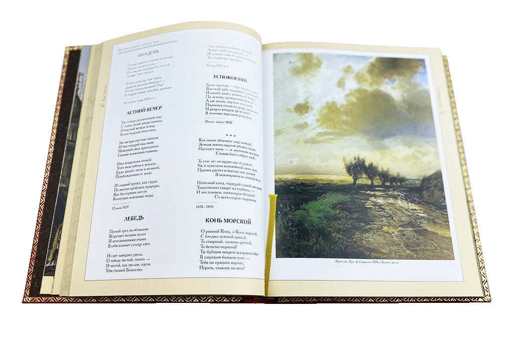 напечатан на мелованной бумаге. Обрез оформлен художественным изображением. Ляссе из